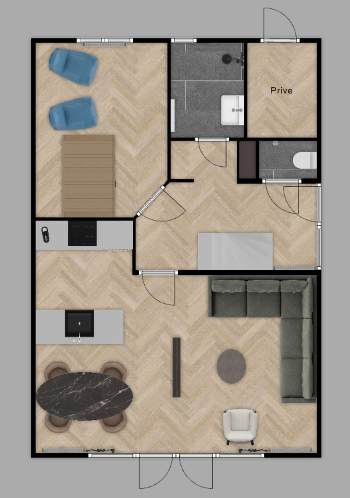 Deze vakantiewoning in Drenthe is ingericht met oog voor detail. Warme tinten, donkere accenten en natuurlijke materialen zorgen voor een rustige, stijlvolle sfeer waarin jullie direct kunnen ontspannen.